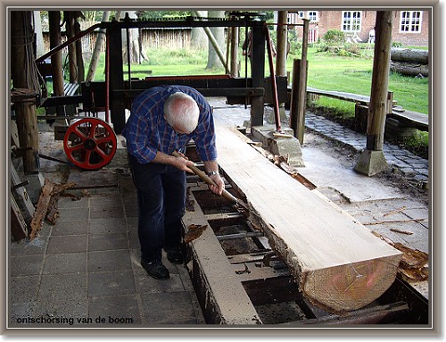 geeft de werkgroep houtzagerij met verve demonstraties aan het publiek: