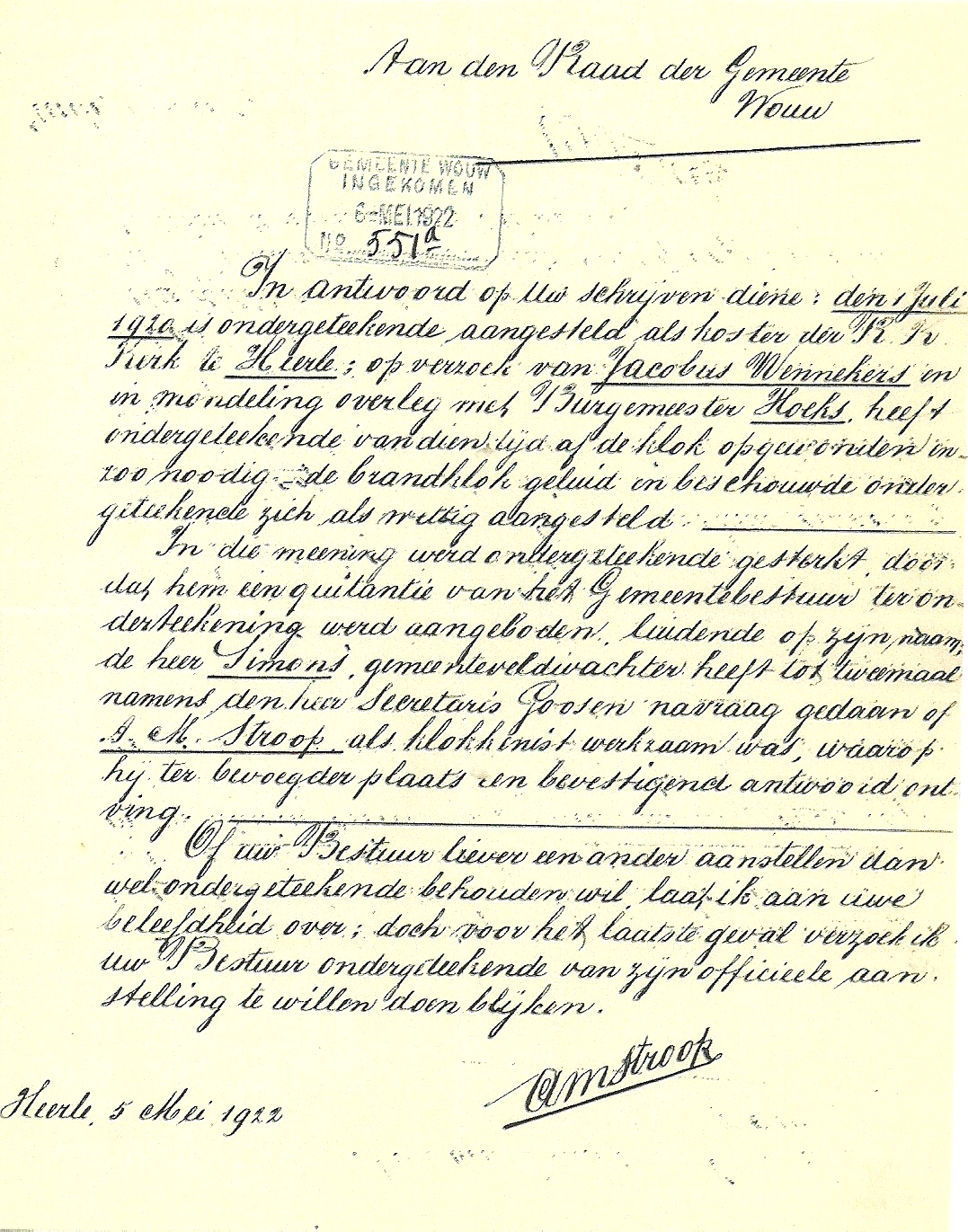 sollicitatiebrief over het opwinden van de kerkklok is ooit in ‘t