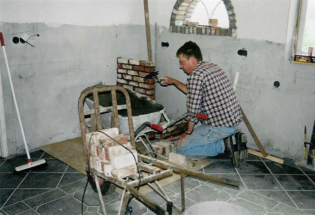 John aan het (metsel-) werk in restauratie van de B&B aan de voorzijde | Restauratie van de schuur |