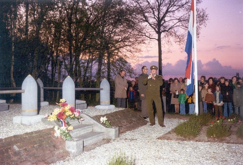 1975 Een militair speelt de 'Last Post', als eerbetoon aan de gesneuvelden. Foto voormalige gemeente Wouw / de Vierschaer |
