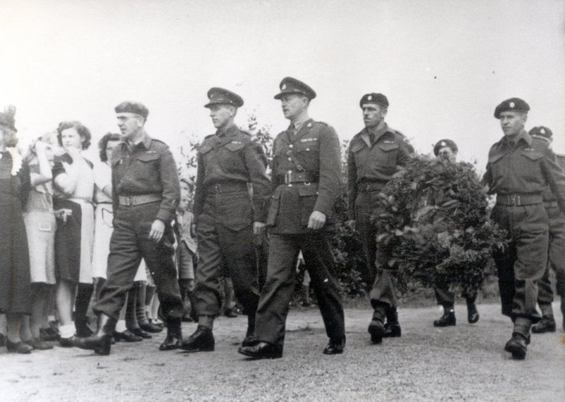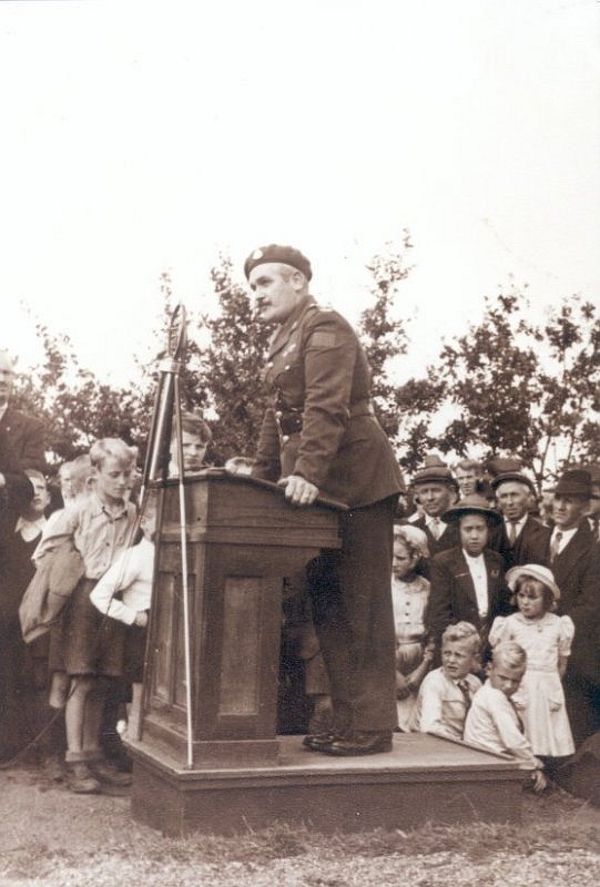 luitenant-kolonel Cromb. Cromb bedankte Moerstraten en zei blij te zijn om te weten dat de dappere Canadezen niet in vreemde grond achterbleven, maar bij vrienden. Foto voormalige gemeente Wouw / de Vierschaer |