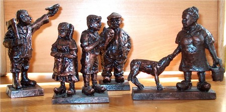 Beeldjes kerkdorpen brons-oxide kleur. Per beeldje € 14,50 |
